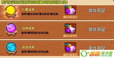 七星连珠:使用1-7星各一颗龙珠兑换随机8级宝石一颗。