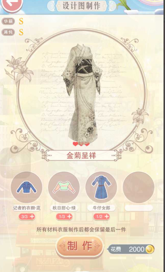 需要设计图中的原料的衣服才能制作出设计图中的衣物。