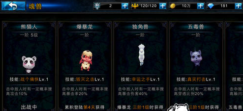 通过消耗兽魂可以对魂兽进行灵魂激活,提升魂兽的属性,兽魂在精英关卡有几率得到,另外困难副本也可以得到兽魂,
