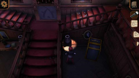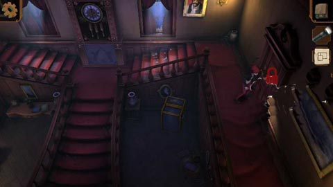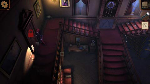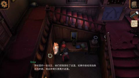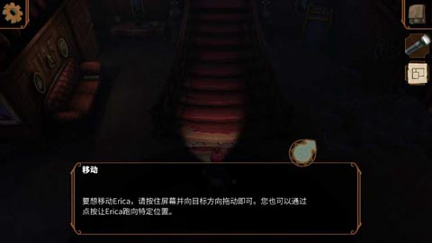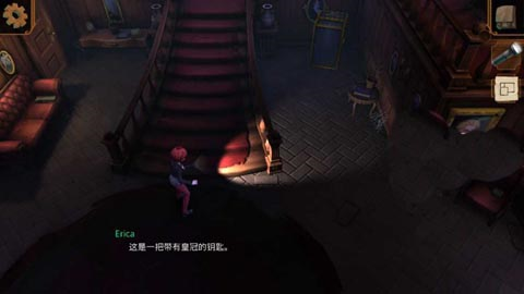 然后可以到处找线索,小编让Erica往楼上走了,两边各有一个上锁的门,所以需要找到钥匙和其他线索。