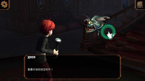 对话结束惊醒了鬼屋的怪兽,下图中绿色圆就是攻击标志,要在两个圆重合的时候点击才会更好的命中攻击怪物,怪物也会攻击Erica,所以必须要做好攻击战斗准备!