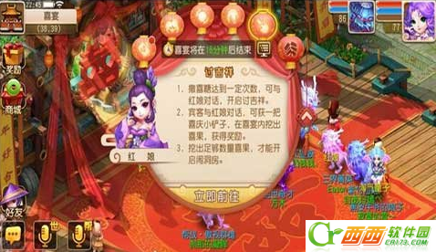 在游戏中喜糖达到一定的数量玩家就可以去新娘那里讨要吉祥活动了,而每个玩家都会有一个铲子就可以开始挖道具了喔。而在游戏中玩家开始洞房的时候,宾客就可以找到淘气童子选择用银币或者金币来闹洞房了喔。而金币有几率获取金刚石、定魂珠等道具,在喜宴的最后会有喜宴宝箱来让玩家和新婚夫妻拾取的喔。