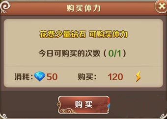 最简单粗暴的获取体力的方法了,我们可以直接用钻石来购买体力,花费50钻石就可以购买到120点体力,