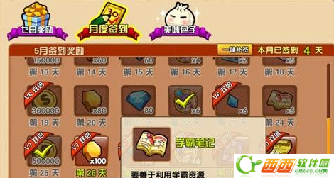 接着就是各种奖励了。首先是签到,其中我们能得到非常经验含量非常丰富的学霸笔记等,而类似的奖励还有VIP礼包和7天奖励,都能得到不错的证书强化道具。