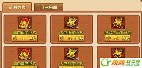 通过学霸商店我们还可以进入学霸商店。在商店中我们可以通过分解金色以上的证书来获得碎片进而兑换各种制定的证书。当然,如果你不舍得分解证书来获得碎片,那么还有别的获得证书碎片的途径。