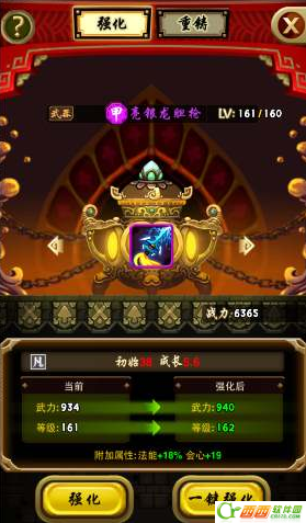 1)强化可提升装备的等级,随着等级的提升,主属性也会提升。装备的初始值和成长越高,每升一级的加成也越多。强化装备只需要消耗金币,强化等级越高,花费费用也越多。