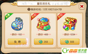童年大礼包:强化石礼包*1(内含17个任意强化石)、九转金丹*5、修炼果*5、回梦丹*1、大碗红罗羹*1、大碗绿萝羹*1