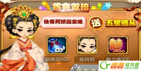 首先就是首充的3个奖励了。银两2万,陈阿娇一枚,魅力值500。这其中银两虽然能让我们前期多强化一下自身,但是并不算多。魅力值500很不错,但是前期的作用并不是很大。最主要的是能够得到陈阿娇。