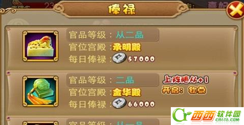 1.每日银币奖励(官品越高,每日俸禄越高)