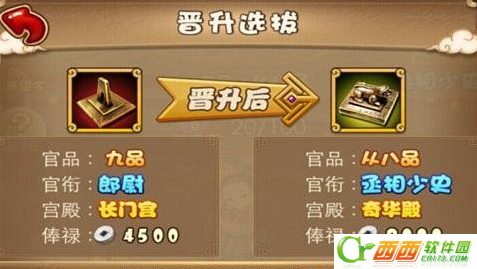 最后就是通过提高官品来提高好感度的好感度的上限了。在我们初始的时候好感度只能够提升到1级,之后每提升一阶就能够提高一级的好感度上限。