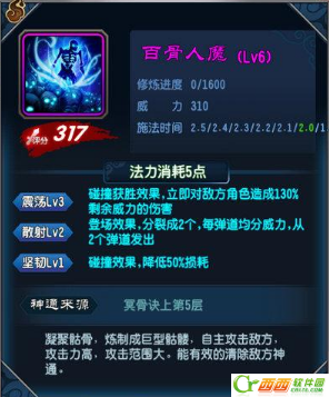 过关技巧:第二关也简单,当能力达到3后,将白骨锤放置在左或右弹道即可(等神通碰撞结束后再放).