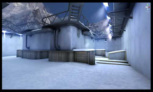 首先为玩家介绍一下冰天雪地的简单地形,中间是一个大田字形的通道,另外两边都有三面墙挡着,视频开阔,躲藏点较少,是对比两名玩家真正的实力。