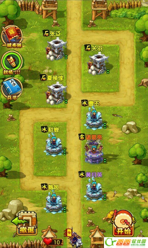 曹丕的位置一定要减速武将,貂蝉位置是主力,开局炮塔攻击两次就鼓舞炮塔错开炮塔攻击,这样能杀一个抗晕,向左走的抗晕不用管不要用冰雨打他,卡好中路的怪,那个抗晕跑到下面就可以被法师打死。