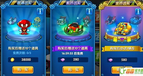 道具:改装S级以下赛车所需要的零件,有几率获得部分A级赛车和S级赛车。购买后必送1辆车。