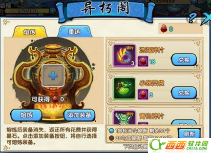 4、大家可以将紫色品质以上不用的装备放到异朽阁中进行熔炼,然后可以获得一定数量的血石,这个血石就可以兑换器灵。