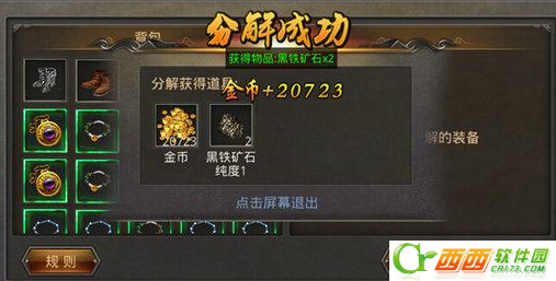 所有装备均可以被分解,装备分解后直接消失。装备分解获得不同纯度的黑铁矿石,等级≥50级的装备分解可额外获得金刚石。