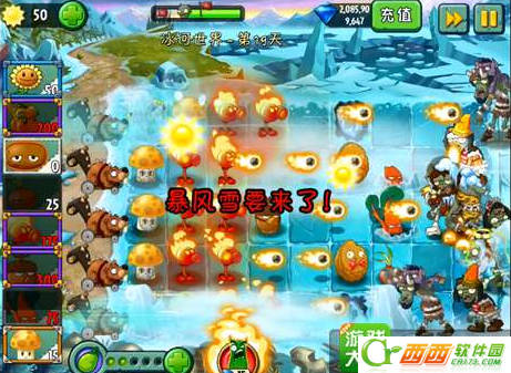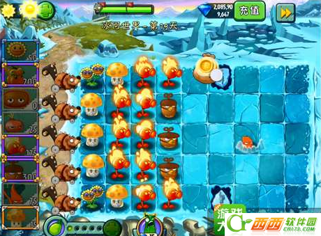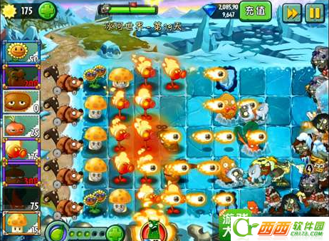 除了新敌人,之前的几个老敌人同样会登场,相比之下,难度小多了。不过都是再布局火焰豌豆射手,保证不要全部被冰冻。