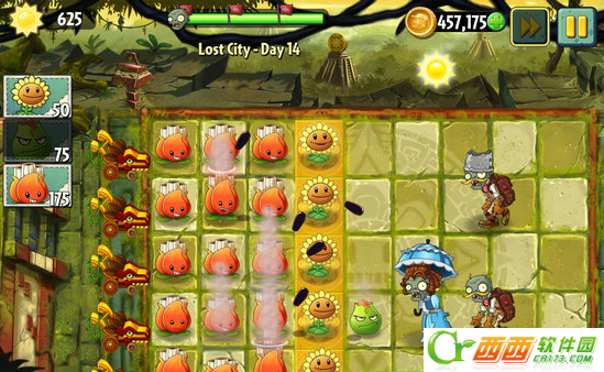 植物大战僵尸2失落之城第14天攻略,第14天系统植物,本关我们只能用系统给的植物来抵御僵尸,所以相对来说难度会比较低(毕竟官方不会闲着蛋疼给你做一个必死的局),下面咱们就一起来看看吧。