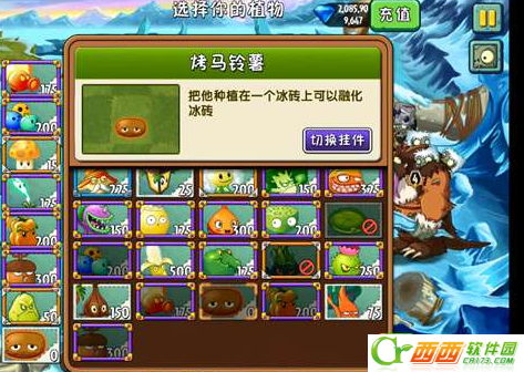 主要植物选择:窝瓜、火焰豌豆射手、辣椒投手、闪电芦苇、烤马铃薯、保龄泡泡等。