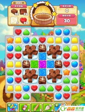 不过还好的是布朗尼的消除要比巧克力简单的多,只要周围有曲奇被消除,就可以了。所以个人的建议是一开始就以消除布朗尼为主,最好是从下面的开始移动,而且选择那种比较靠近中间位置的曲奇,这样不仅可以消除布朗尼,还可以消除巧克力。