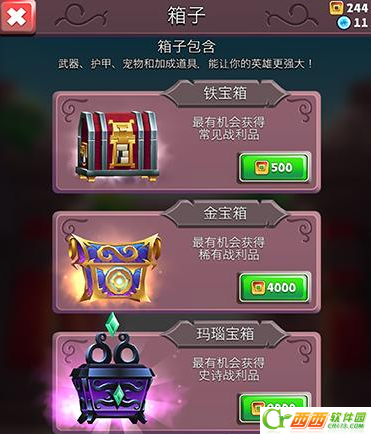 500金币的铁宝箱可以抽出常见的宠物,4000金币的宝箱可以抽出常见和稀有的宠物,最后9000金币的宝箱可以抽出任何一种包括史诗的。