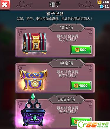 500金币的铁宝箱可以抽出常见的武器,4000金币的宝箱可以抽出常见和稀有的武器,最后9000金币的宝箱可以抽出任何一种包括史诗的。