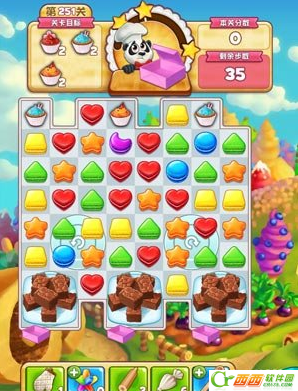 点评:过关的重点就是在布朗尼的身上,如果想稳妥必过关的话,那么使用的道具以擀面杖为最佳。横行方向消除布朗尼,三两次基本上都差不多了。