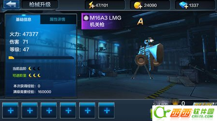 枪械升级升级给枪械带来的是最直接的属性提升,玩家可以枪械经验卡,提升枪械的等级,从而提升枪械的属性。