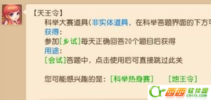 有些朋友对周一和周五的科举乡试不怎么重视,只是答答而已,不求全部作对,只求快速获得经验。但是周一至周五的乡试中可以获得科举法宝,即天王令和地王令。地王令就不给大家介绍了,天王令的效果是100%选择正确答案,这样就可以省去看选项的时间,只需要直接点击天王令法宝即可答对过关。而天王令的获得方法是在乡试中20道题目全部作答正确。因此,如果大家想进入殿试,一定要在平时的乡试中全部答对,不要错过每一个天王令,或许恰恰是因为这1秒甚至说是零点几秒,就可能会与殿试擦肩而过。