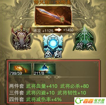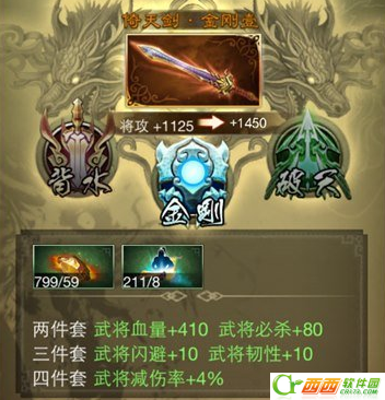 套装即几件关联装备同时装在同一武将身上时,会激活套装效果,给予武将额外属性加成
