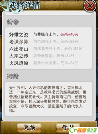 武将传奇是指武将与武将相关联的传奇,当传奇涉及的武将同时上阵时,即会激活对应传奇