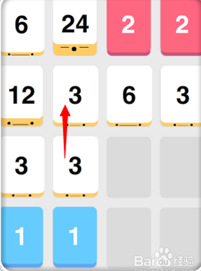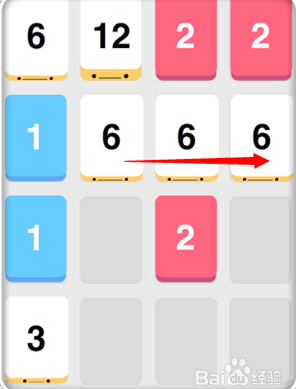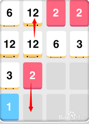 这个游戏,向一个方向移动,能够将这个方向的所有相邻的、抵墙的、1与2,以及后面的相同的数字合并,