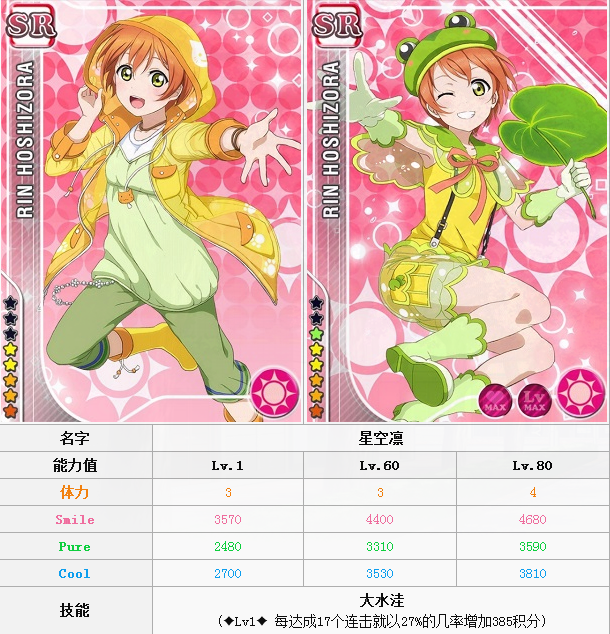 ※「SR星空凛」属于先行发布。活动结束后,预计将在7月加入优等生招募中。(活动先行发布的SR在优等生招募中的获得几率要比普通的SR低)