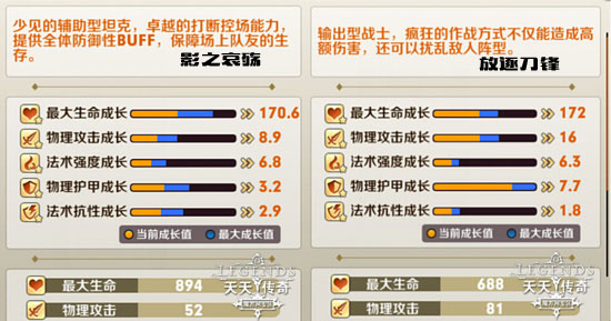 从上述属性图可以看出,他们一个是均衡型的英雄,一个是偏向型的英雄。