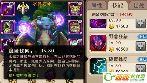 水晶之牙释放地穴潜行的时候,从地底钻出的瞬间喷出一张巨大的蛛网,使自己6秒内无法成为被攻击目标,12秒内获得命中提升,30级的时候提升1212命中。