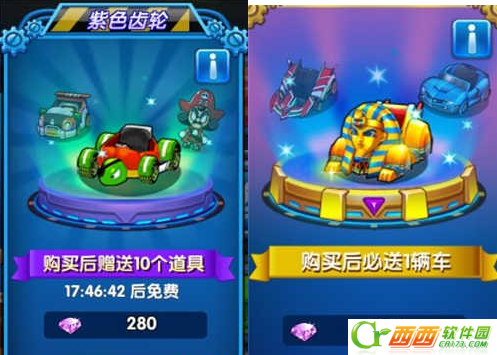 在工厂中我们点击中间的齿轮购买,因为初始的时候第一次的购买机会是免费的,所以我们就有一定的几率获得S车尖峰HT XE.这里每一个新账号只有一个机会,左边的虽然也免费一次,但并没有获得S车的可能。
