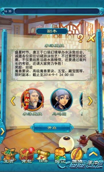 节日限时副本玩法,玩家可从"任务-副本"进入选择"水泳竞技"进行挑战,每人每天可以挑战一次,获得10点幻境暑假积分。