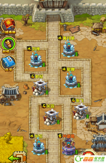 鄱阳8,没有貂蝉估计过不了,开局炮攻击了5下以后就错炮,最下面的刘备放最强弓箭,第一个马车要在到达关羽的正下方之前杀死,然后下冰雨,冰雨的位置放上一点,尽量多打到一些上面的怪,然后就是看情况了,怪多的时候就放冰雨,抗晕和马车在前面就鼓舞最强弓箭,打不死就放走,方法是下冰雨在你准备放走的怪的上面一点位置,确保不打到放走的怪但又拖住了后面的怪,还是要注意貂蝉的技能,避免貂蝉的技能失效。