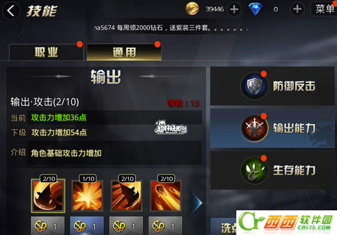 游戏总中的职业技能wp和通用技能sp都非常匮乏,虽然可以通过钻石购买,但是非常贵,并且还有vip等级购买次数限制,所以一般多数玩家并不能点满所有技能点,土豪玩家无视。