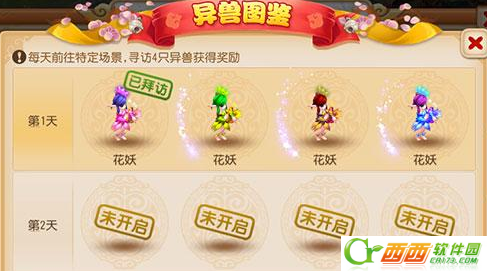 2、玩家根据图鉴中的指示在游戏地图中寻访想对应的珍禽异兽,每天可寻访四只异兽,异兽图鉴每日解锁一行。