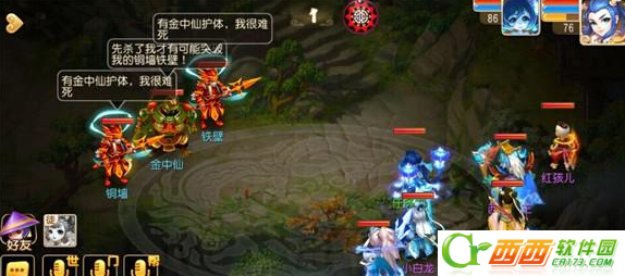 先杀主怪。旁边两个小怪在金中仙在场上的时候双防很高打他们基本不掉血,打死主怪后防御降低。