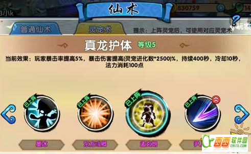 4、真龙护体:在5秒内能够提高玩家(500+灵宠进化数400)免伤,冷却10秒能力消耗法力100点。