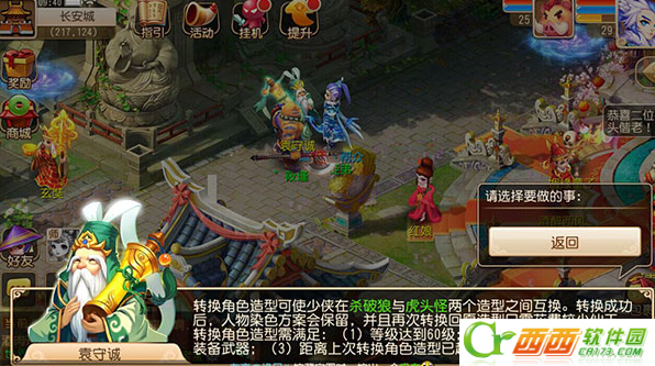 1、想转虎头怪,要去长安城坐标(217,124)找袁守城