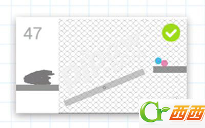 脑点子第47关还是要求玩家创造出更高的速度这个速度完全可以忽略蓝色球和旋转木板的碰撞时产生的减速,并且最终和红色球碰撞。