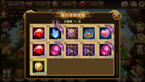 每日签到也可以得到大量的进阶石奖励,vip达到一定的等级,还可以得到双倍的进阶石奖励。
