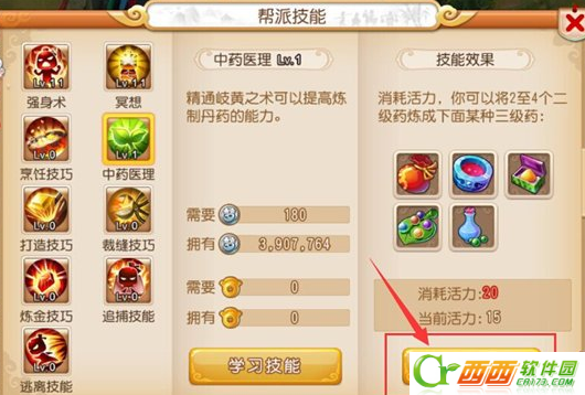 1、首先打开帮派技能面板