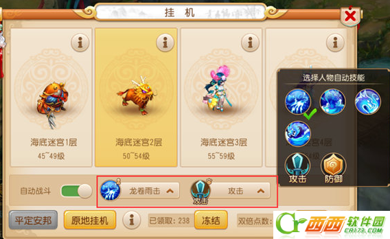 在挂机界面多了自动战斗、以及技能选择的按钮,其实这看似更贴切更方便,其实并没有什么卵用。