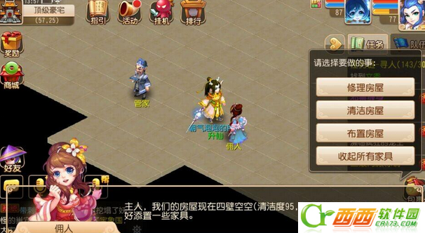 在梦幻西游手游中刚建新房的第一天房屋的清洁度为100,环境度为30,耐久度也是为100。