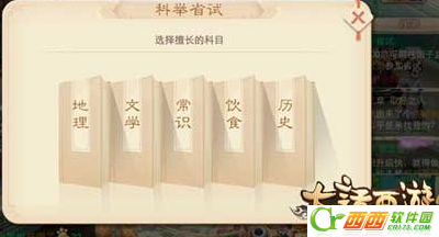 获得省试资格的玩家,可以在活动时间内,前往长安城国子监 礼部官员出参加科举省试。科举省试分为:地理、文学、常识、饮食、历史等5个科目,玩家可以选取擅长的1个科目进行答题。