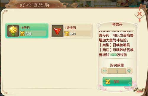 大话西游手游好心值获取攻略,好心值有什么用?在大号西游手游中,好心值是可以用于兑换道具的,目前可以兑换神兽丹和1级宝石,还是很不错的,推荐大家多做一做,不需要这些的话也可以先攒着。